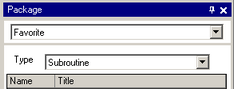 Select a package file in the [Package] window. The subroutine will be registered to this package. (For example: Favorite)