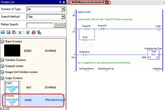 1. Click the [Screen List] tab to open the [Screen List] window.