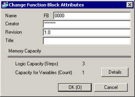 In the [Change Function Block Attributes] dialog box that appears, edit [Name], [Creator], [Revision], [Title] etc.