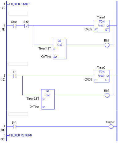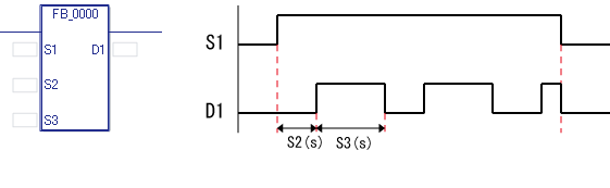 The FB outputs a flicker signal which toggles between ON and OFF with specified durations, when a specific bit (S1 operand) is ON.