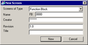 Enter the name of the Function Block in [Name] and click [New]. (Example: FB_0000)