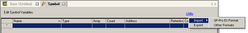 In the [Edit Symbol Variables] window, click [Utility] and then click [Import].
