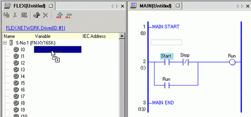 Each I/O terminal address on the I/O can be dragged and mapped to an instruction operand in the logic program.