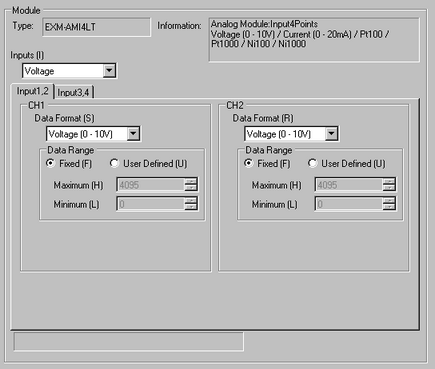 The analog values in the voltage input settings appear within the range of 0 to 4095 as shown below.