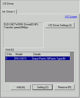 When using the following display units and I/O driver, in the System Settings click [I/O Driver] to display the following window.