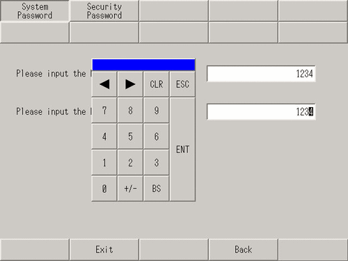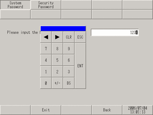 The [System Password] screen opens. Touch the input field and enter a password using the displayed numeric touch keys.