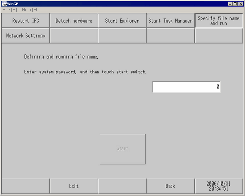 Touch the system password entry field and enter the system password. If you have not specified a system password, enter "1101" (standard password).