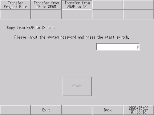 Transfer the backup memory (SRAM) data onto the CF/SD card.