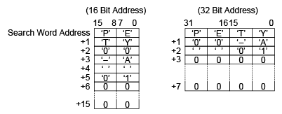 If the specified name is less than 32 characters, write 0 (NULL="0(h)") or a blank space ("20h") in all the addresses following the last character. Characters before the 0 (NULL) or space are considered part of the search condition.