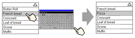 On the display unit, you can edit recipe labels from the Enhanced Recipe List and edit the values of elements from the Enhanced Recipe Data List.