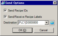 From the [Common Settings] menu select [Enhanced Recipe Settings], open the recipe group tab (RecipeGroup1), then click [Send Options].
