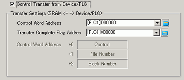 Select the [Control Transfer from Device/PLC] check box.The transfer settings appear.