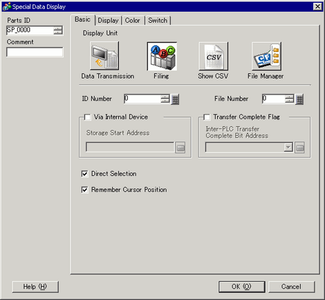 In [File Number], set the file number of the Special Data Display [Filing] you want to display.
