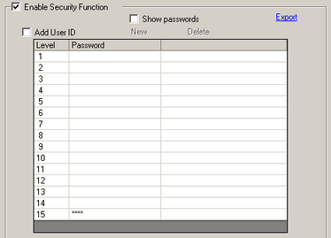 Password setting screen will open. Select the [Enable Security Function] check box, and in [Level 15] enter the password.