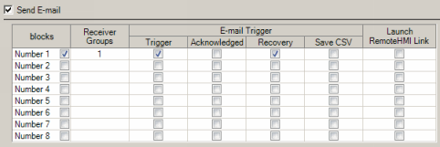 Select the [Send E-mail] check box and the Alarm block numbers that you want to send e-mail.