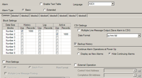 In the Block Settings, select the check box of the block associated with the registered message and of the display mode (History/Log/Active) you want to use, and set the number of messages stored as history in each mode.