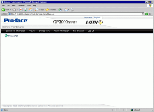 When you connect to the display unit's Web Server, the following [Welcome] screen appears.