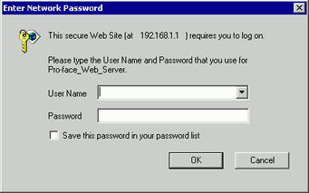 Select a menu, such as [Device Menu], to display the [Enter Network Password] dialog box. Enter the password, which can be up to 8 single-byte alphanumeric characters long, to access the security level required for operations and displaying data, and click [OK].