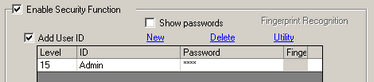 2. In the Set Password screen, select the [Enable Security Function] and [Add User ID] check boxes. Click [Create] to add one set of passwords. Each click adds one row to the registration area.