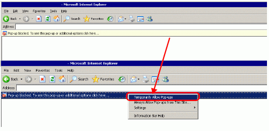 In Internet Explorer, from the [Tools] menu point to [Pop-up Blocker] and select [Pop-up Blocker Settings].