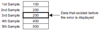 When the [Sampling Cycle] is short (1 to 2 seconds, or 100 milliseconds), and a heavy-load process occurs such as a screen change, sampling may not take place at the defined frequency (samples will be missed). As shown above, the previous data will be used.