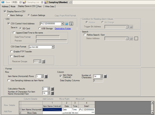 Specifies whether to save as a CSV file. If so, set the control address to write the data to an external storage.