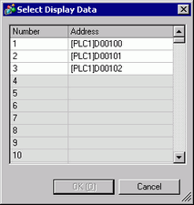 When inserting a [Data] column, the [Select Display Data] dialog box appears where you can select a data column (address) to add.