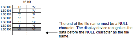 In this example, a file name is stored in LS0100 through LS0106 as follows.