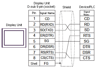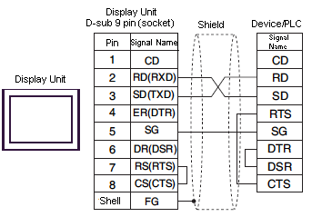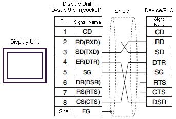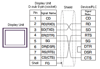 The Extended Script's wiring diagram for connections between the display unit and device/PLC will vary depending on the [Flow Control] set up in the [Project Window]'s [Script] node, and the [Flow Control] set up in the device/PLC's [Communication Settings].