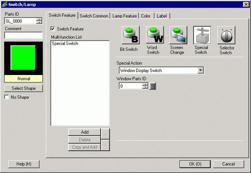 From the [Parts (P)] menu, point to [Switch/Lamp (C)] and select [Special Switch (P)], or click