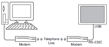 To connect the display unit to a modem, use "CA6-USB232-01", a USB-Serial (RS-232C) conversion cable manufactured by Pro-face (sold separately).