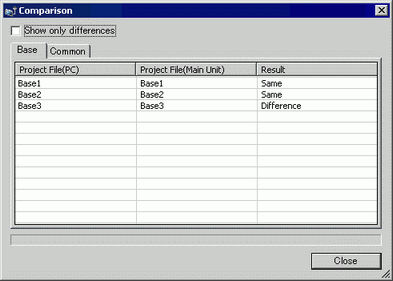 The following [Comparison] dialog box appears and displays the results of the comparison between the PC and display unit.