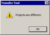 A message is displayed when there is no difference between projects or there is a difference in the file date/time stamps.