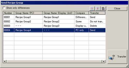 Click [Transfer Enhanced Recipe] to open the [Send Recipe Group] dialog box.