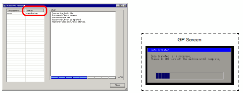On the GP-Pro EX status bar, click the Transfer Project icon