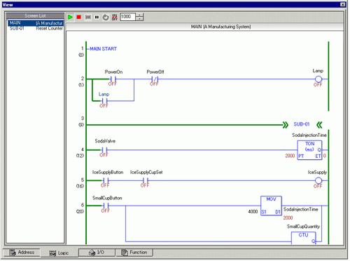 In the [Logic View], operational status of the logic program is shown with green lines.