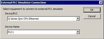 From the pull-down menu select the device/PLC to connect with the external PLC simulator.