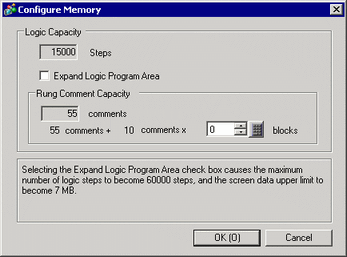 When the number of rung comments exceeds the rung comment capacity (total of initial and expanded amount of the rung comment block), if you set [Expand Logic Program Area] to OFF, the window appears. Delete rung comments.