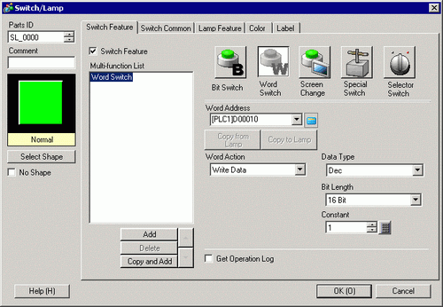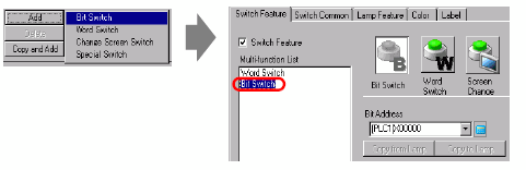 From the [Parts (P)] menu, point to [Switch Lamp (C)] and select [Word Switch (W)] or click