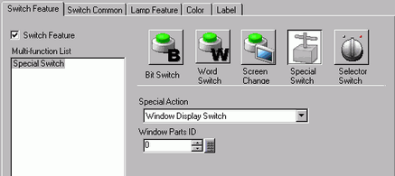 This is the same as the Switch attached to a Window part which triggers the Window. Press the Switch and the designated Window displays. Press it again and the Window closes.