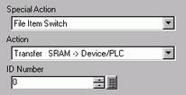 Creates a switch for launching an executable which transfers device/PLC data stored on the display unit's external storage. Touch the switch to display the [Transfer Device/PLC Data] screen and transfer the ladder file on the external storage.