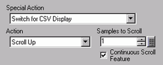 This is the same as the Switch which is attached to the Special Data Display [Show CSV]. Creates a Switch to scroll through a CSV Display or print CSV data.