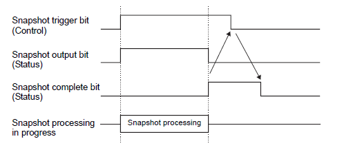 Even if the trigger bit turns OFF before the snapshot complete bit turns ON, the snapshot complete bit automatically turns OFF.