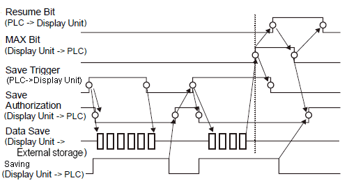 After all the specified files have been saved (the MAX bit is turned ON), no more files can be saved. When the resume bit is turned ON, the oldest file is deleted and a new file is saved.