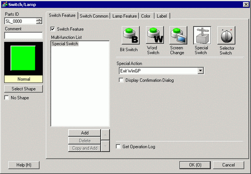 If you select the [Confirm] check box, the following message appears when you touch the switch on the WinGP.