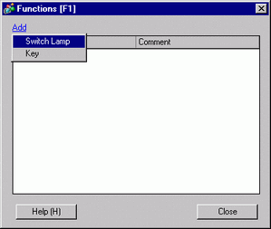 Double-click the function key to which you want to allocate the feature (for example, F1) to display the [Function Settings] dialog box. Click [Add] to select the part attribute (for example, Switch Lamp).