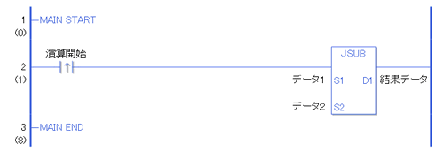 よって、演算開始がONし続けても、JSUBP命令は1スキャンのみ実行します。