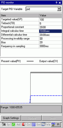 In Monitor Step, for PID instructions used on the Logic screen, you can check the operation of PID values. You can also change each parameter.