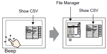 If the CF Card is removed or the cover of the CF Card slot is opened while the CSV file displays, the [Show CSV] dialog box is cleared.