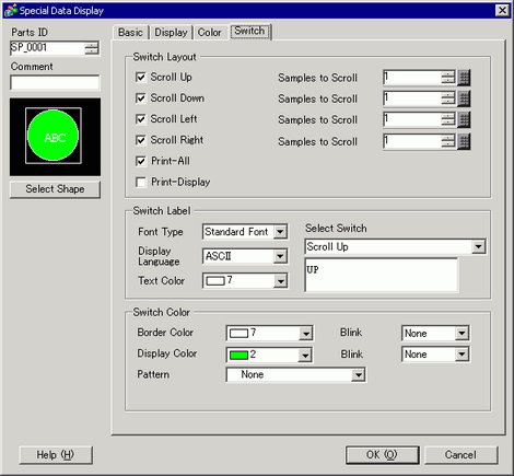 Click the [Switch] tab and under [Switch Layout] select the [Display] check box. Select the shape, label and text color. Click [OK (O)].